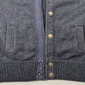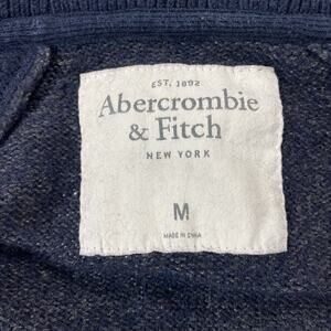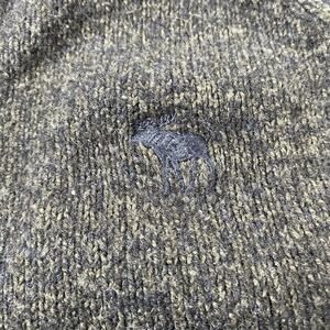 Abercrombie & Fitch Mens Medium Navy Gray Wool Blend Snap Front Raglan Cardigan Sweater. Embroidered moose logo at left chest.