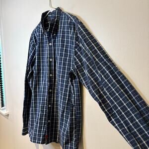 Abercrombie & Fitch Men's Plaid Muscle Button Down Size Large Blue White EUC