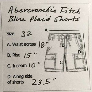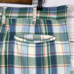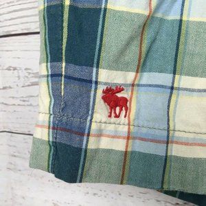 Abercrombie Fitch Mens Plaid Shorts sz 32 Blue Green Casual Flat Front Cotton