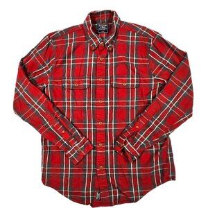 Abercrombie & Fitch Men’s Red Plaid Flannel Button Down Shirt Size Large