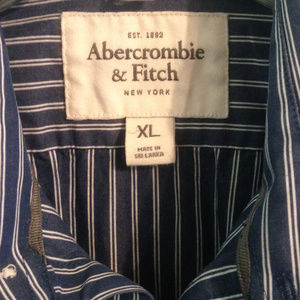 Abercrombie & Fitch Men's Shirt - Navy Blue w/White Stripes
