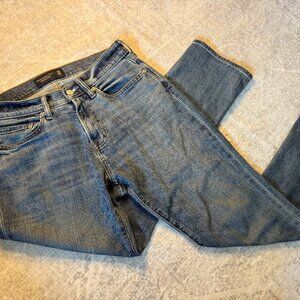 Size: 29 waist, 30 length Description: in great condition! Athletic straight jeans in vintage stretch fabric that is straight through the thigh and leg. Athletic fit gives more room through the thigh and seat, featuring added stretch for comfort. Clean hem, medium wash