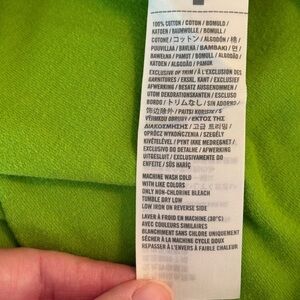 Green short sleeve shirt with dark white fabric appliqué sellout graphic on front. Made of 100% cotton, machine washable.