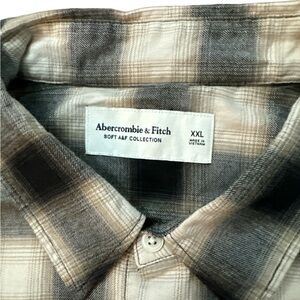 Abercrombie & Fitch Men's Soft AF Relaxed Plaid Button Up Shirt XXL Black & Tan