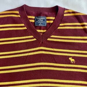Abercrombie & Fitch Men’s V Neck Sweater Size Medium Burgundy Yellow Stripes