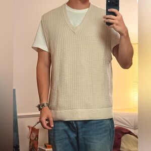 Abercrombie & Fitch Men's V-Neck Sweater Vest - Cream Size Large