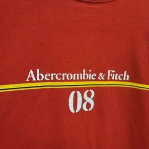 Abercrombie & Fitch Mens Y2K Spellout Shirt Size XL Red Crew Neck Preppy Sporty