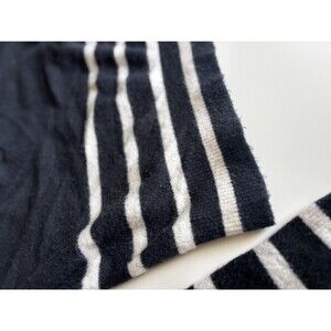 The Abercrombie & Fitch Merino Wool Cropped Pullover Preppy Sweater in Navy is a stylish and versatile addition to any woman's wardrobe. This sweater features a classic V-neck design with long sleeves and an open-knit striped pattern, making it perfect for various occasions from casual to business. The wool blend fabric adds a touch of softness and warmth, making it ideal for the winter, fall, and spring seasons. With its preppy theme and regular fit, this sweater embodies a timeless and chic look that is sure to elevate any outfit.