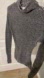 Dark gray textured knit long-sleeve top with a sleek, fitted silhouette. Features a soft mock neck and subtle open-knit detailing near the shoulders for added texture and style. Made from luxurious merino wool, offering lightweight warmth and a soft feel. Perfect for layering or wearing on its own for a clean, elevated look.