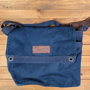 Abercrombie & Fitch Messenger Bag Blue Canvas Y2K Spell Out Leather Patch 17x13