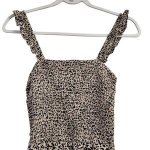 Abercrombie & Fitch Midi Dress Small Smocked Leopard Print Ruffled Slit Boho