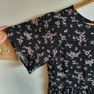Abercrombie & Fitch Mini Dress Oversized Short Sleeve Black Pink Floral XS Extra