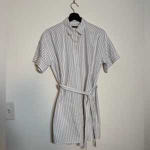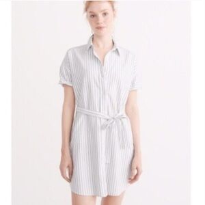 Abercrombie & Fitch Mini Striped White and Light Blue Belted Shirt Dress