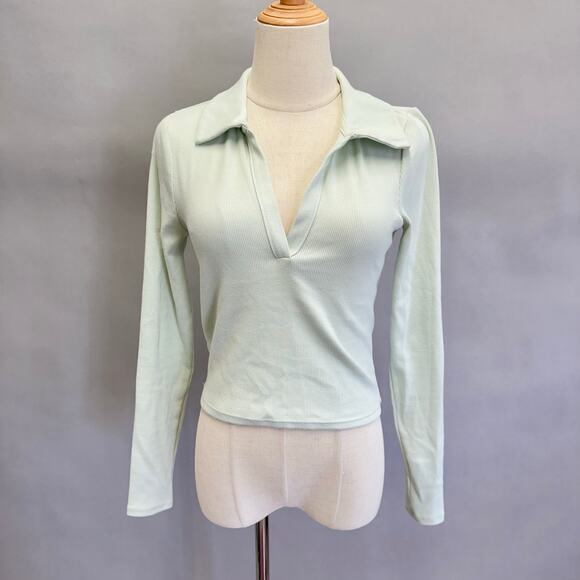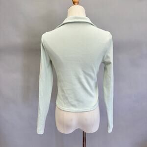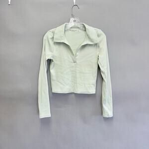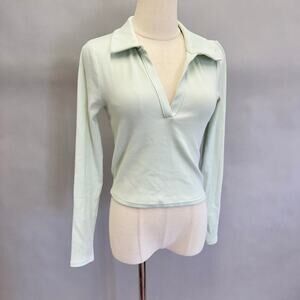 Abercrombie & Fitch Mint Green Ribbed Polo Long Sleeve Cropped Top Size Small