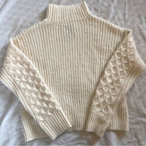Abercrombie & Fitch Mock Neck Sweater | Cream Cable Knit | Size S