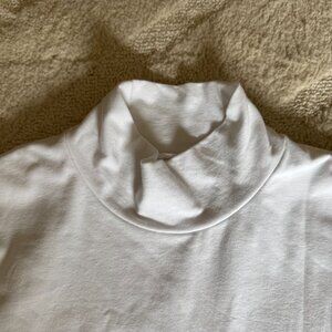 In great condition! White long sleeve top, soft and skimming material, mock neck detail.