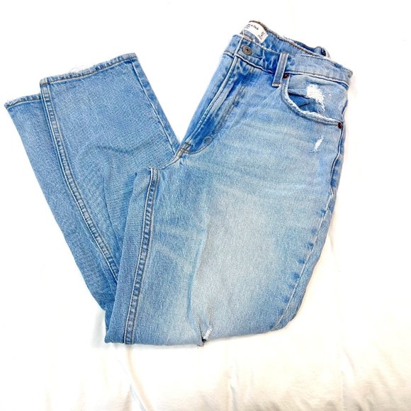 Abercrombie & Fitch The Mom High Rise Distressed Ripped Knee Light Wash Jeans 27