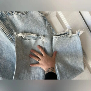 Abercrombie & Fitch Mom Jean High Waist 27/4 Distressed Raw Hem Light Acid Wash