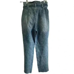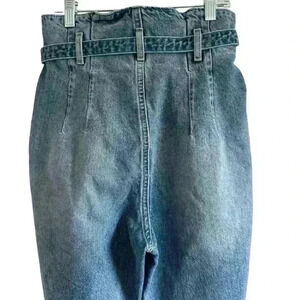 Mom Jean Paper Bag Raw Hem Tie Waist High Rise Blue