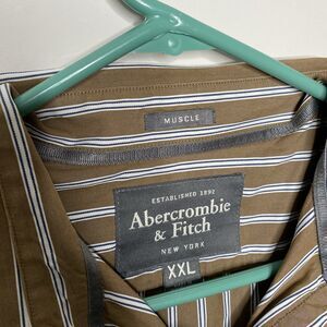 Abercrombie & Fitch Muscle Brown Stripes Button Up Shirt Long Sleeve Men's Size XXL. In good condition. 100 % cotton. Pocket.