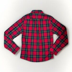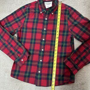 Abercrombie & Fitch red, blue and green plaid muscle long sleeved button down shirt in men’s size large. Shirt is in good condition.