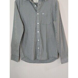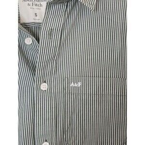 This green striped shirt comes in a men's size small and is perfect for any season, whether it's winter, summer, fall, or spring. The shirt also features a button-up closure with the Abercrombie & Fitch logo as an accent. The shirt is machine washable and is part of the Muscle product line. Add this modern-themed shirt to your collection today!