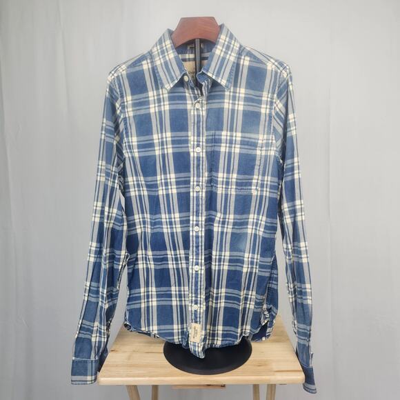 Abercrombie & Fitch Muscle Fit Plaid Flannel Shirt Mens Large Blue Cotton