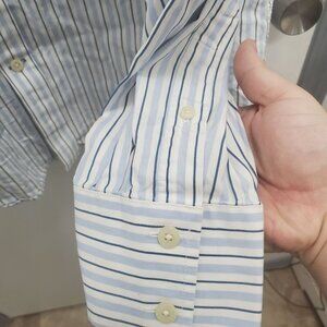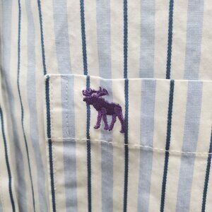 Abercrombie & Fitch Muscle Men's Y2K White Blue Stripe Long Sleeve Button Up XL