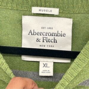 Abercrombie & Fitch Men’s Muscle Green Gray Striped Cotton Cashmere Sweater XL