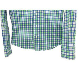 Elevate your wardrobe with the Abercrombie & Fitch Muscle Preppy Academia Office Button Down Long Sleeve shirt in a versatile size small. This classic plaid button-up is a testament to timeless style, featuring a crisp blue hue and bright green that complements any ensemble, from business casual to a polished office look. Crafted from pure cotton, it promises comfort and breathability throughout your day. Designed with a button-down collar and a regular fit, this shirt caters to a variety of occasions, be it a casual outing, a cocktail party, or a formal event. Its long sleeves and chest pocket adorned with the iconic Moose logo add functional flair. Machine washable for easy care, it's an essential piece for any discerning gentleman's collection.