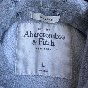 Abercrombie Fitch Muscle Sweatshirt Mens L Hooded Gray Kangaroo Pocket Polka Dot