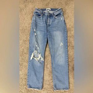 Curve Love High Rise Dad Jean by Abercrombie & Fitch in Destroyed Light Blue Denim. Size 26 Short.