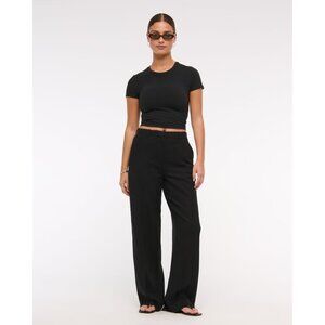 Abercrombie & Fitch NWT Tailored High Rise Ultra Wide Leg Linen Blend Black Pants Size 34