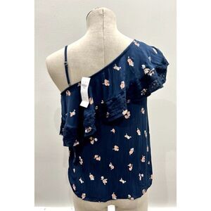 Abercrombie & Fitch NWT Ruffle One Shoulder Floral Top in Navy Size XS
