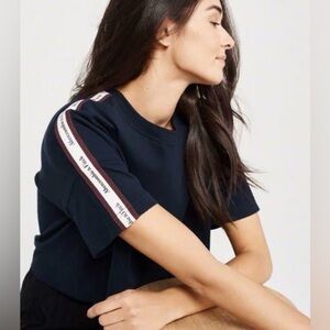 Abercrombie & Fitch Navy Blue Logo Tape Cotton Cropped T-Shirt, Size Small