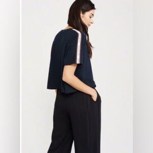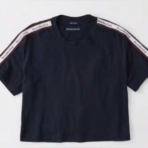 Abercrombie & Fitch Navy Blue Logo Tape Cotton Cropped T-Shirt, Size Small.