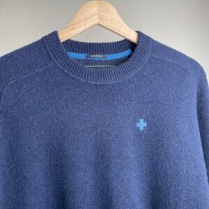 Classic navy blue sweater. Soft and comfortable. Features subtle logo detail.