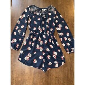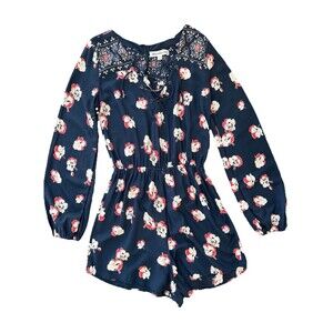 Abercrombie & Fitch Navy Floral Lace Up Long Sleeve Romper Boho Festival Size S.