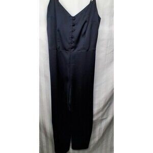 The Abercrombie & Fitch Navy Jumpsuit in size M is a stylish and versatile one-piece outfit perfect for various occasions. This sleeveless jumpsuit features a smocked back and adjustable straps for a comfortable and customizable fit. Made from polyester satin fabric, it exudes a solid blue color with button and smocking accents, adding a touch of elegance to the overall design. The jumpsuit is ideal for travel, parties, casual outings, or even business events, making it a must-have addition to any woman's wardrobe.