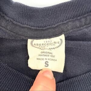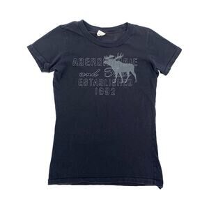 Abercrombie & Fitch navy logo short sleeve tee shirt, has a bleach stain on the back near collar, not super noticeable, otherwise good condition
