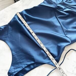 Abercrombie & Fitch Navy Satin Sleeveless Ruched Formal Dress Women's Size Small