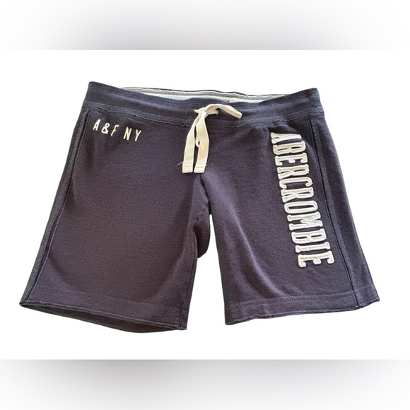 Abercrombie & Fitch Navy Spell~Out Logo Fleece Shorts Sz M Drawstring Lounge