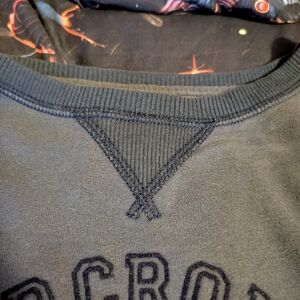 Stylish navy sweatshirt with Abercrombie & Fitch logo. Comfortable and casual.