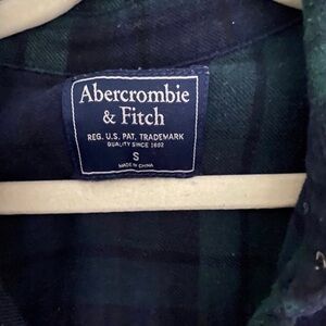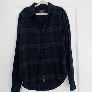 Abercrombie & Fitch Navy and Green Plaid Button Down Shirt