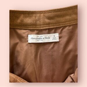 Abercrombie & Fitch New York Mini Skirt Sz 4 Faux Suede Brown A Line Snap Front