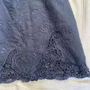 Abercrombie & Fitch Off the Shoulder Blue Embroidered Loose Fit Dress Small