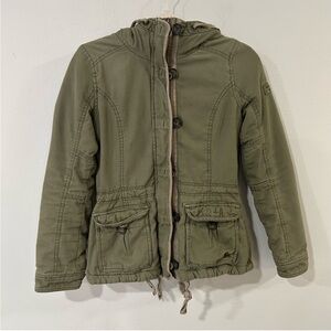 Abercrombie & Fitch Olive Green Parka Hooded Sherpa Jacket Women’s Size Small