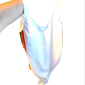 Abercrombie & Fitch Stylish one piece swimsuit in white and Perfect for fun days at the pool or beach. rainbow on each side, size M,