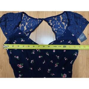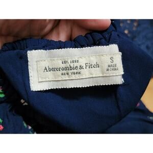 Abercrombie & Fitch Open Back Fit Flare Floral Dress Womens Sz S Small Navy Blue