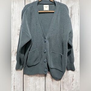 Abercrombie & Fitch Oversized Gray Blue Chunky Knit Cardigan Size Medium EUC